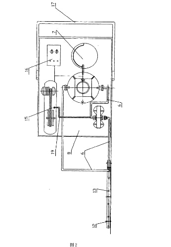 4.2啟動(dòng)空氣壓縮機(jī)15,待壓縮機(jī)儲(chǔ)氣罐壓力達(dá)到0.6Mpa時(shí),打開(kāi)空氣壓縮機(jī)的出氣閥門經(jīng)高壓氣管19給氣動(dòng)隔膜泵4送氣。