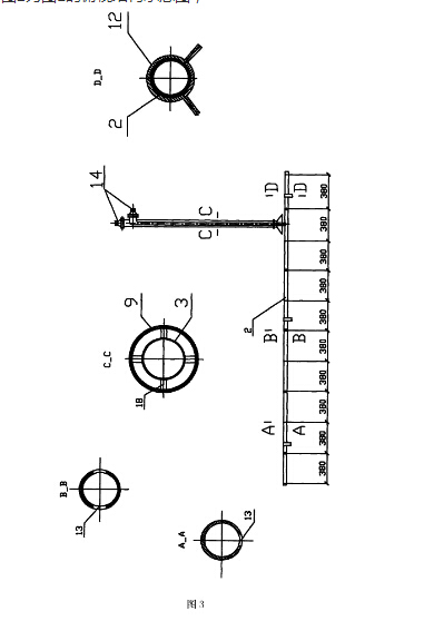 圖3為噴射管和吸油管的組合結(jié)構(gòu)示意圖及其A-A,B-B,C-C,D-D剖面示意圖。