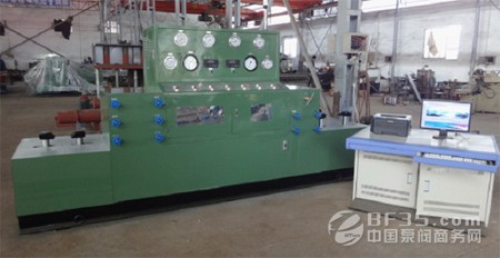 圖為YFS-ZC200t型智能型油田閥門專用試驗臺是國內(nèi)水壓試驗壓力最高的試驗臺,最高試驗水壓為157.5MPa,均采用數(shù)據(jù)采集系統(tǒng)和遠程控制系統(tǒng),符合API6A油田閥試驗標(biāo)準(zhǔn),以及確保人員安全試驗。使用于江蘇宏泰石化機械有限公司等單位。