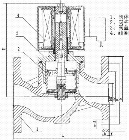 本閥為分步動作直接導式常閉電磁閥,線圈通電后銜鐵先帶動小閥開啟,大閥在所形成的介質壓差和電磁力的作用下而開啟。線圈斷電,銜鐵部件復位,大小閥利用介質壓力而緊密關閉。